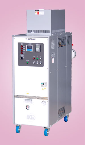 冷却はシステム内に熱交換器がセットされ温度調節機からの信号により電磁弁を介して冷却水を自動的に送って冷却します。多量の冷却を必要とする場合には別途に熱交換器をセットすることができます。